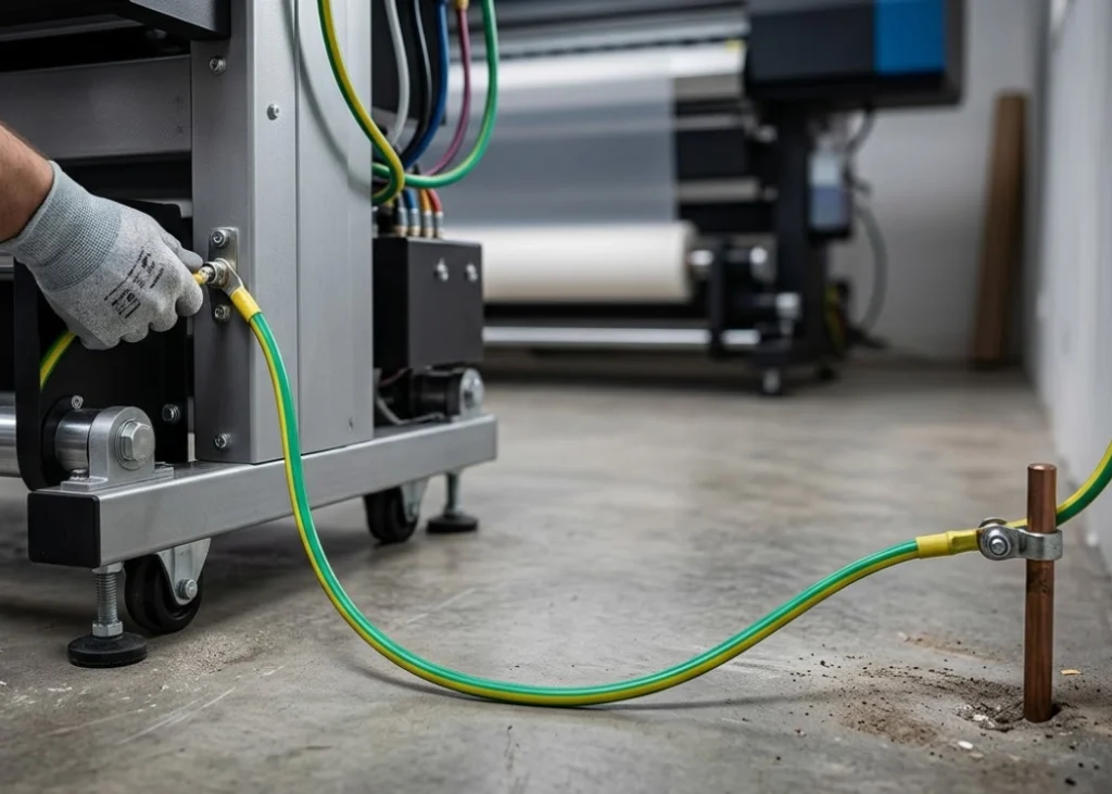 ติดตั้งสายดิน (Grounding): นี่คือวิธีที่สำคัญและได้ผลที่สุดสำหรับเครื่องพิมพ์หน้ากว้าง ตรวจสอบให้แน่ใจว่าเครื่องพิมพ์ได้รับการติดตั้งสายดินอย่างถูกต้องเพื่อระบายไฟฟ้าสถิตออกสู่ดิน