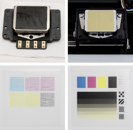 ก่อนที่จะเริ่มทดสอบการพิมพ์จริง ให้ตรวจสอบสภาพภายนอกของหัวพิมพ์ก่อนเป็นอันดับแรก สิ่งที่ควรสังเกตมีดังนี้: